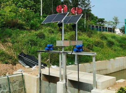 由太陽能光伏板和小型風(fēng)力發(fā)電機(jī)為蓄能電池組充電,電池組有BMS電池管理軟件管控,為永磁無刷直流電機(jī)的各類驅(qū)動裝置供電,同時為視頻監(jiān)控,壓力、流量、液位傳感器,照明等供電